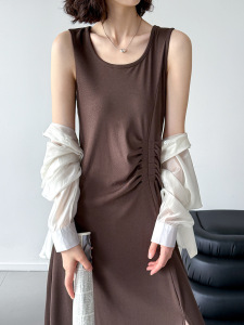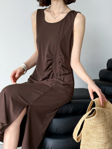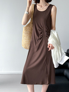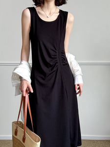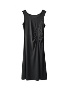 Juzhi 福祉モデル 返品交換不可 ノースリーブ プリーツ ドレス 気質と通気性 2225
