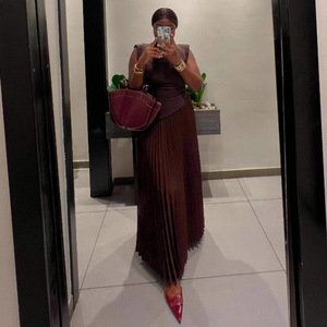 アフリカの新しい女性の無地不規則なショートノースリーブトッププリーツスカートヨーロッパとアメリカのハイファッションスーツ