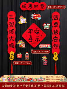 【磁気・粘着両用】四季三食対句+平和と喜び+繁栄冷蔵庫用マグネット