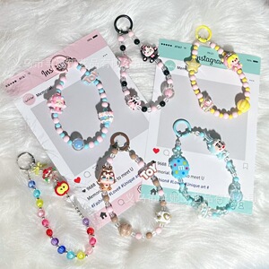 携帯電話チェーン クリエイティブ漫画キャラクター布製DIY手描きビーズキーホルダー 携帯電話ケース吊り下げチェーン バッグ飾り