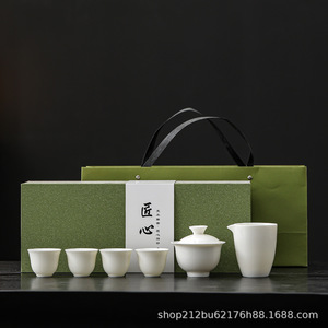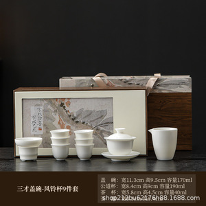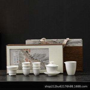 ハイエンドの白磁羊脂翡翠磁器セットカンフーティーセットオフィスホリデーギフトリーダーシップホームカンパニーギフトボックスロゴ