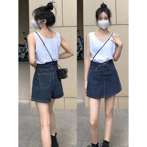 2025 カウボーイショートスカート女性 Z 夏新ハイウエスト A ラインファット MM スカートプラスサイズホットガールヒップカバースカートパンツ