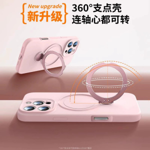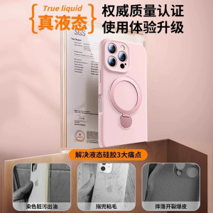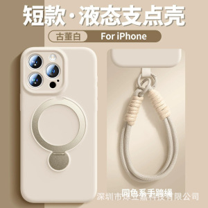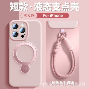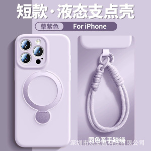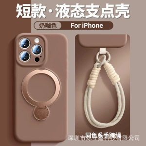 360 ° iPhone16携帯電話ケースに適した回転スタンド、ストラップ付き液体シリコン、Apple 15保護カバー14