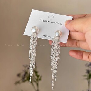 スーパーフェアリーリボンパールタッセルイヤリング女性用 2025 新しいホットスタイルニッチデザインコールドスタイルロングイヤリング