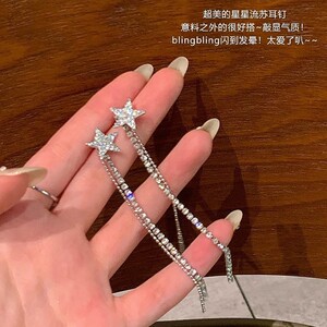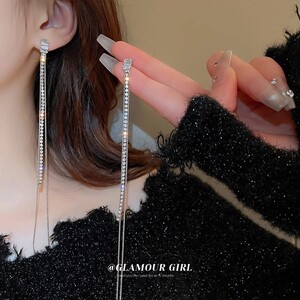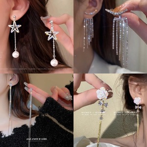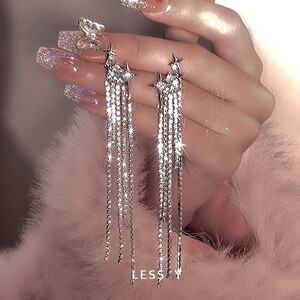 ジルコン ダイヤモンド ロング タッセル イヤリング