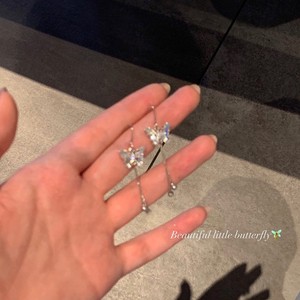 アシンメトリーキャットアイバタフライスタッドピアス