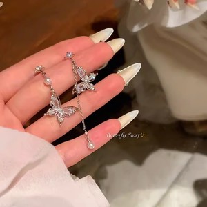 アシンメトリーバタフライタッセルスタッドピアス
