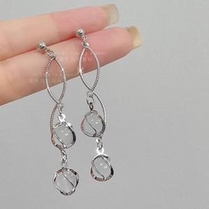 シルバー幾何学クリスタルイヤリング