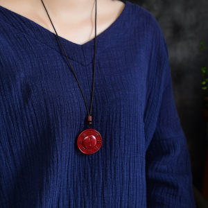 朱砂太极八卦图吊坠本命年项链男女情侣款本命年礼物低含量