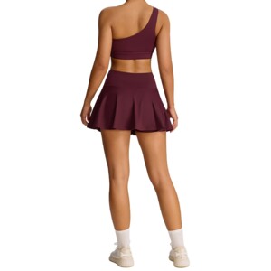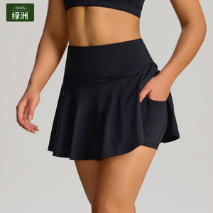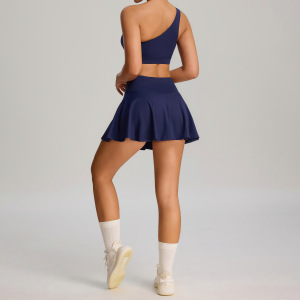クロスボーダー新しいプリーツテニススーツ女性のポケット露出防止スポーツウェアスーツ速乾性通気性ランニングフィットネスウェア