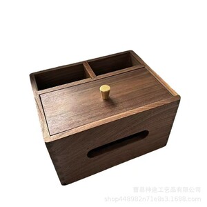 ブラックウォールナット無垢材多機能ティッシュボックスリビングルームコーヒーテーブルナプキントゥイッシュボックス多機能リモコン収納ボックス