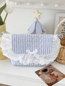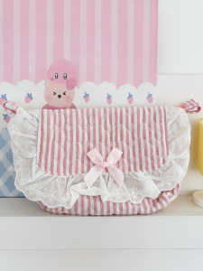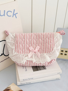 クロスボーダーピンクとブルーのストライプの恋人レースクロスボディバッグ甘くて新鮮なイン取り外し可能なショルダーストラップ大容量収納バッグ