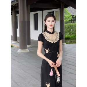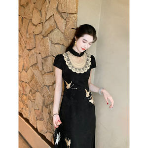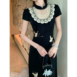 女性の 2025 新しい夏のハイエンドの新しい中国風のレトロな改良されたチャイナドレスサテン蝶ドレス