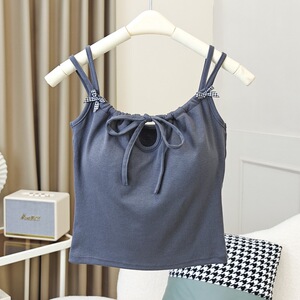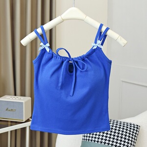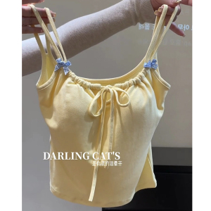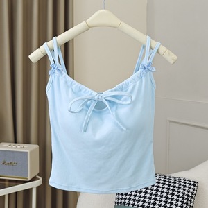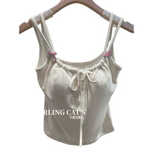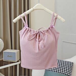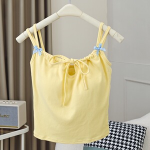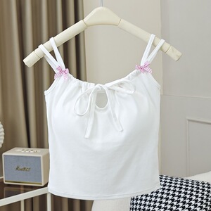 女性が外で着用できる純綿のリボン付きキャミソール、スリムでスリムな女の子、甘いBMスタイルの夏のアウターウェア、美しい背中