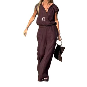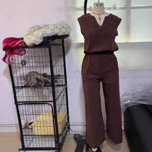 スポット 2025 夏の新しいクロスボーダー綿とリネンのノースリーブヨーロッパとアメリカのベストとズボンの 2 点セットの女性のカジュアルウェア