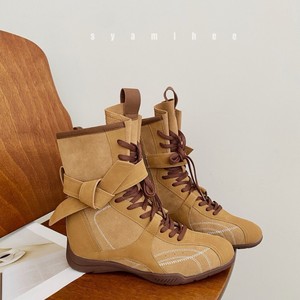 2025 春レトロインナー高さマーティンブーツ女性のブラウンボクシングブーツヌバックレザーラウンドトゥレースアップスポーツブーツショートブーツ