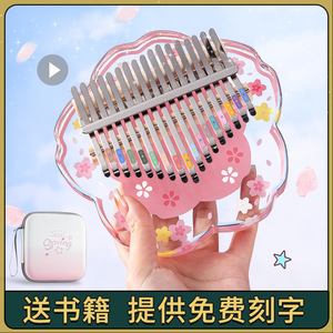 ピンクの花と落ち桜風/17音【無料ベルベットバッグ+厚みのある楽譜+アップグレードされたピアノ本体】