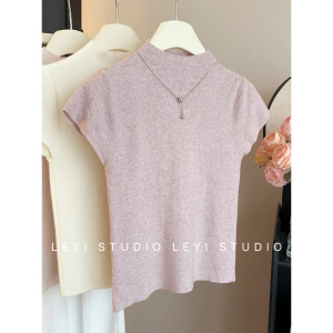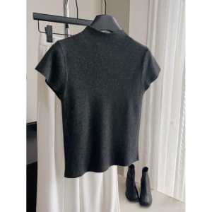 6735 # Pure Desire スリムデザイン、小さなフライングスリーブ、ハーフタートルネックセーター、夏の新しいスタイル、スリムでシンプル