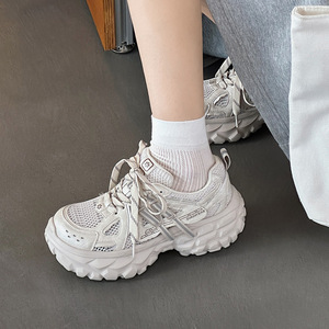 女性のための小さなタイヤソールのお父さん靴 2025 夏の新しい軽量メッシュ通気性厚底靴カジュアルスポーツシューズ