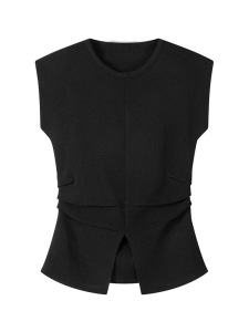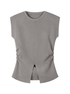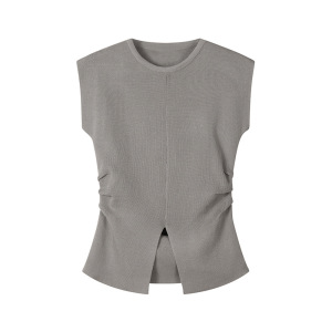 韓国スタイルラウンドネックアイスシルクニット半袖レディースTシャツ夏の新しいデザインスリットウエストスリムトップ
