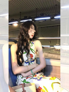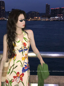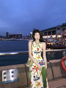 EIA Yiyao [香港島日記] 香港スタイルのホルターネックドレス女性の夏のレトロな気質痩身バックレスロングスカート