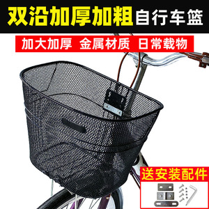 自行车篮子前置车筐折叠车挂篮加大加厚金属蓝筐单车菜篮通用车篓