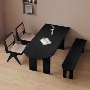 法式 中古实木餐桌椅组合家用小户型半圆弧形饭桌侘寂风岛台