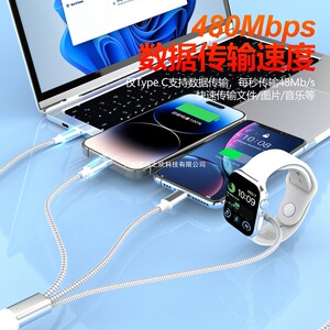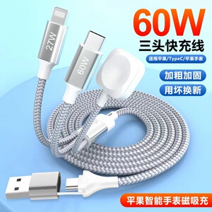 タイプ C からタイプ C + ライトニング + 磁気時計ワイヤレス充電器 1 ~ 3 つの充電ケーブルに適しています
