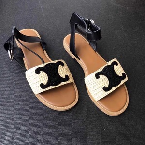 夏季爆款复古凯旋门草编露趾一字带罗马凉鞋女夏平底仙女风凉拖鞋