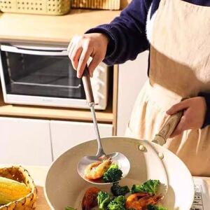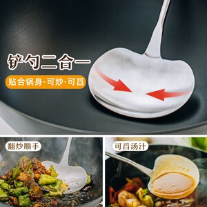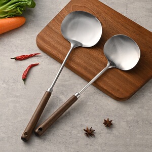 胡桃木不锈钢家用蘑菇锅铲炒菜勺子厨师炒勺长手柄炒菜铲子煎铲