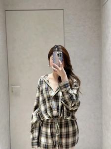 25ss 夏新作チェック柄フード付き長袖シャツショートパンツゆったり万能スーツトレンド