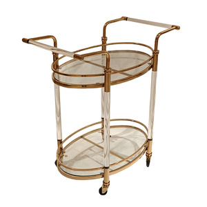 ヨーロッパの二層アクリルワインカートホテルバーメタルモバイル収納ラックカートライト高級ステンレス鋼ダイニングカート