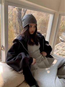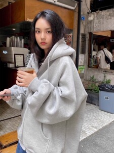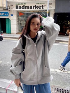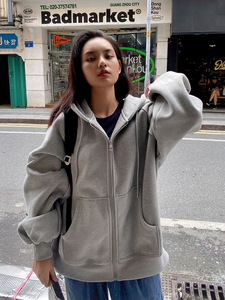 743 # アメリカンレトロジャケットジッパーカーディガンルーズレイジースタイルフード付きスウェットシャツオーバーサイズベルベットトップ