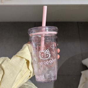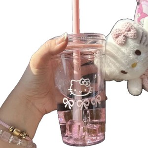 ピンクのリボンキティ転写ステッカー高価値イン風水クリスタル 3D 立体ステッカー水カップステッカー防水