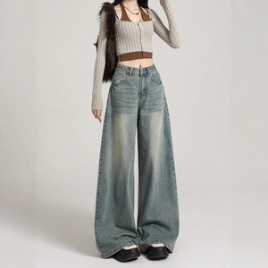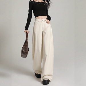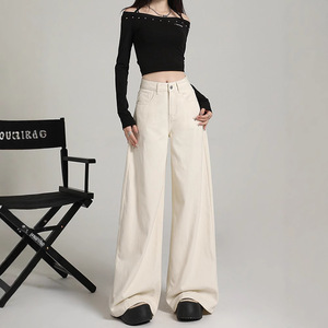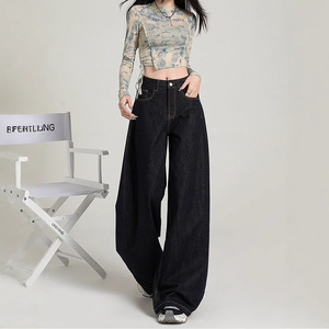 アメリカンレトロワイドレッグジーンズ女性用春夏新作ハイウエストスリムルーズ洋ナシ型ボディフロアレングスストレートパンツ