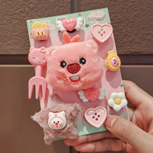 取り外し可能なキュートな漫画風のシューズバックルで飾られた、新しい植毛生地のクロックスシューズ
