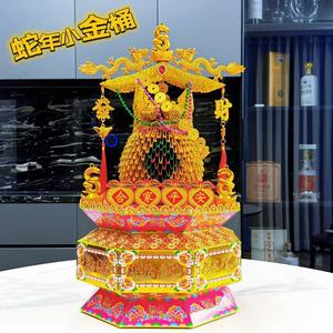 新款潮汕中秋折塔材料包 蛇年小金桶拜月娘手工折纸DIY送视频教程