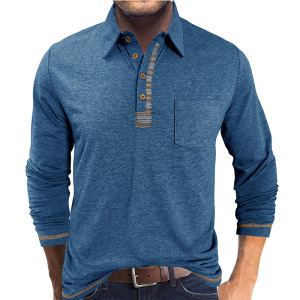 外国貿易ヨーロッパとアメリカのメンズボタンラペルカラーコットン長袖ポロシャツクロスボーダーカジュアルファッションポケットボトムメンズトップ