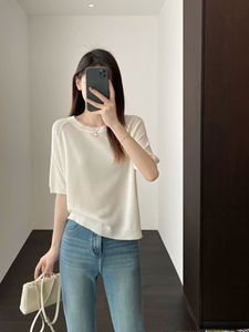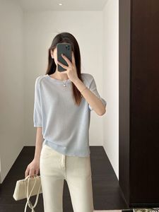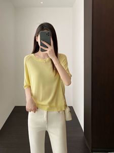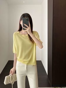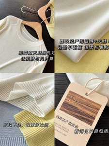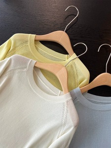 リヨセルテンセルレインデューリネンレディースラウンドネックニット半袖Tシャツリネンシャツ中空トップ女性夏