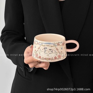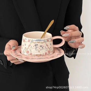 インススタイル漫画セラミックカップかわいいコーヒーカップとソーサーセット高価値アフタヌーンカップラテカップラテアートカップ