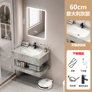 イタリアングレー 60cm 二層スレートシームレス洗面器 + バックライト付きスマートミラー