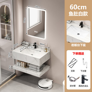 フィッシュベリーホワイト 70cm 二層スレート洗面器 + バックライト付きスマートミラー