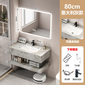 イタリアングレー 80cm 二層スレートシームレス洗面器 + バックライト付きスマートミラー