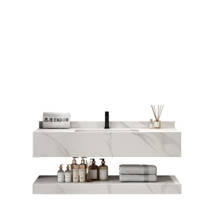 直接供給された二層スレート洗面器バスルームキャビネットホテルスタイルセラミックシームレスワンピース洗面台洗面台キャビネットセット