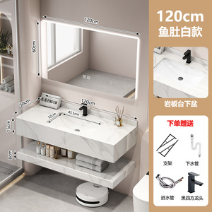フィッシュベリーホワイト 120cm 二層スレート二重洗面器 + バックライト付きスマートミラー