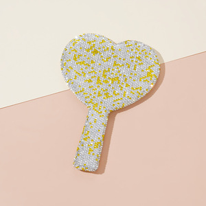 クロスボーダーダイヤモンドハンドヘルド化粧鏡、ポータブルでかわいいハンドルタイプのハンドヘルド小型ミラー、持ち運び可能、インターネットセレブのハート型