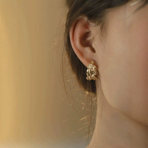 港式复古肌理感C型耳钉女简约时尚气质不规则S925镀银针耳环耳饰