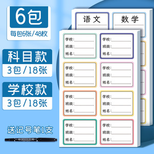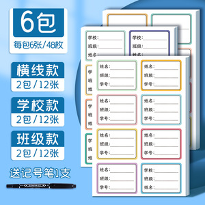 小学生用お名前シール、手書きお名前シール、破れにくいラベルシール、学校名、クラス番号、学生番号シール
