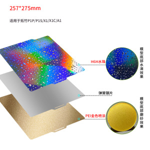 257*257mm 片面 PEI ゴールドスプレー & 片面 H6H 水ビーズフィルム - 磁気吸着なし