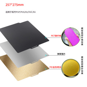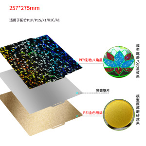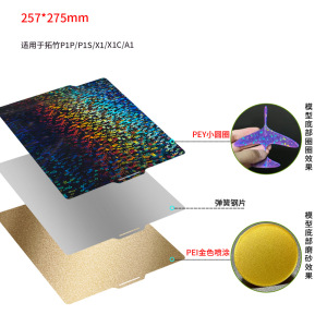 257*257mm 片面 PEI ゴールデンスプレー & 片面 PEO カメレオンフィルム - 磁気吸着なし